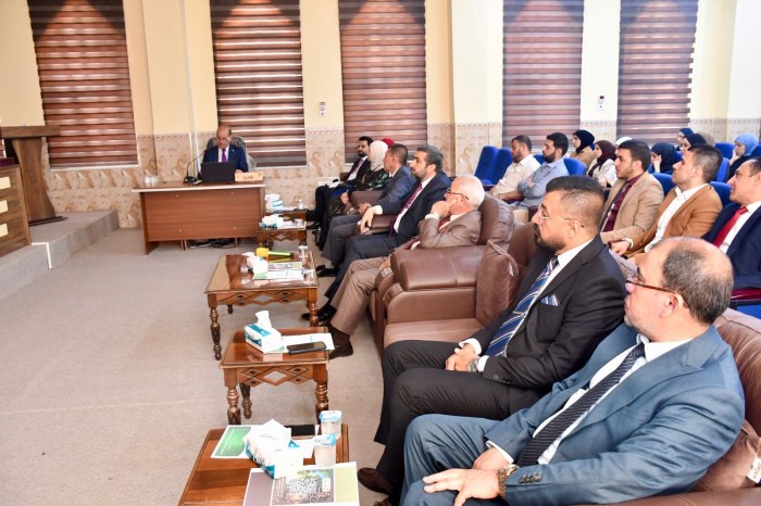 “النفط والبيئة: الصراع بين الاستغلال الاقتصادي وحفظ النظام البيئي”، بمشاركة عدد من الأساتذة والباحثين، وبحضور السيد معاون العميد للشؤون العلمية الأستاذ الدكتور محمد عبد أحمد المحترم.